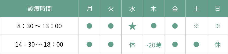 - 月曜日 火曜日 金曜日 8時半から18時まで